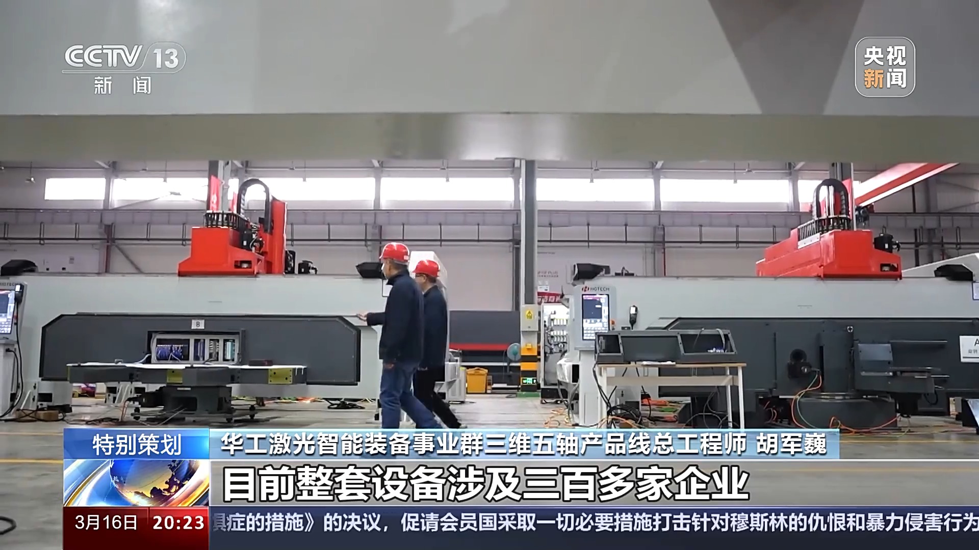 華工激光智能裝備事業(yè)群三維五軸產(chǎn)品線總工程師 胡軍巍:從2016年開(kāi)始,我們對(duì)一臺(tái)完整的三維五軸激光切割機(jī)上下游產(chǎn)業(yè)鏈、供應(yīng)鏈進(jìn)行了整合。目前整套設(shè)備涉及三百多家企業(yè)提供了上萬(wàn)個(gè)零部件,我們已經(jīng)全部實(shí)現(xiàn)了國(guó)產(chǎn)替代。
