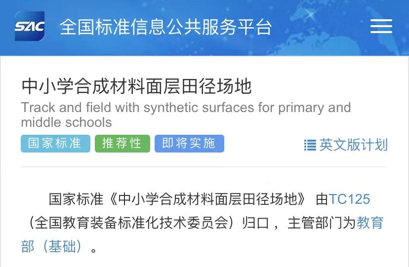 據(jù)介紹,2018年教育部就牽頭出臺了強制性國家標準GB 36246-2018《中小學合成材料面層運動場地》,有力規(guī)范了運動地坪市場;而此次出臺的三項推薦性國家標準《中小學合成材料面層田徑場地》《中小學合成材料面層籃球場地》《中小學人造草面層足球場地》,是2018年強制性國標的配套標準,對中小學相關(guān)運動場地提出更多新要求。此次三項國標由教育部提出、教育部教育技術(shù)與資源發(fā)展中心(中央電化教育館)牽頭制定,國家市場監(jiān)督管理總局和國家標準化管理委員會于去年年底發(fā)布,將于今年7月1日實施。