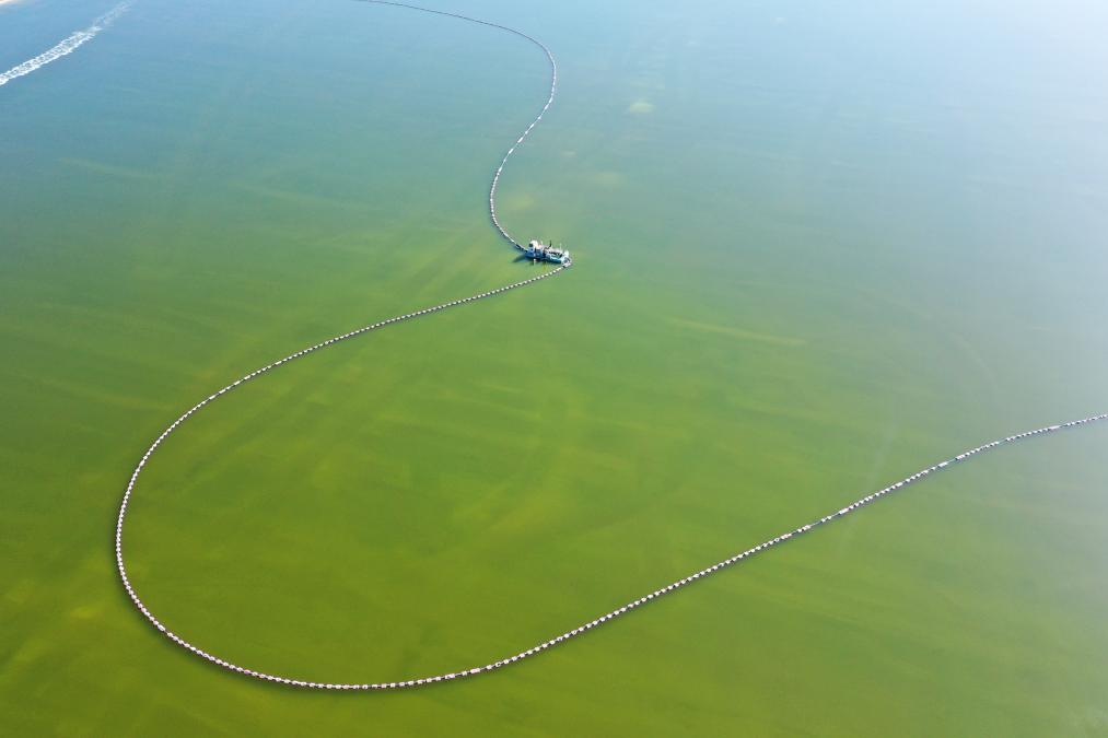 3月14日,青海鹽湖工業(yè)股份有限公司鉀肥分公司的采鹽船在鹽湖工作(無(wú)人機(jī)照片)。新華社記者 陳杰 攝