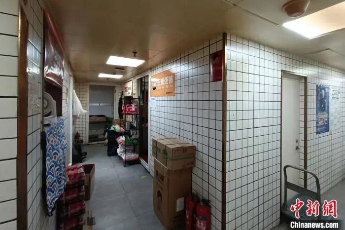 中新財經在調查中發(fā)現(xiàn),該地址一樓為一家生鮮超市,此外并無明顯餐飲店標識,然而不斷進出的外賣員暴露了其中的秘密:跟隨輕車熟路的外賣員乘坐電梯至3層,昏暗的燈光下樓層被三條通道分割,中新財經在這里并沒有找到所謂的“301室”,但每一個走廊兩邊都是各類“幽靈外賣”的廚房操作間。