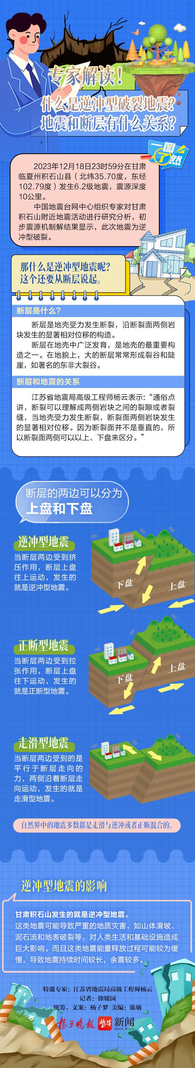 甘肅臨夏州積石山縣6.2級地震牽動著全國人民的心,專家初步分析此次地震為逆沖型破裂,這是一種什么類型的地震呢?揚(yáng)子晚報/紫牛新聞記者采訪了相關(guān)專家進(jìn)行解讀。