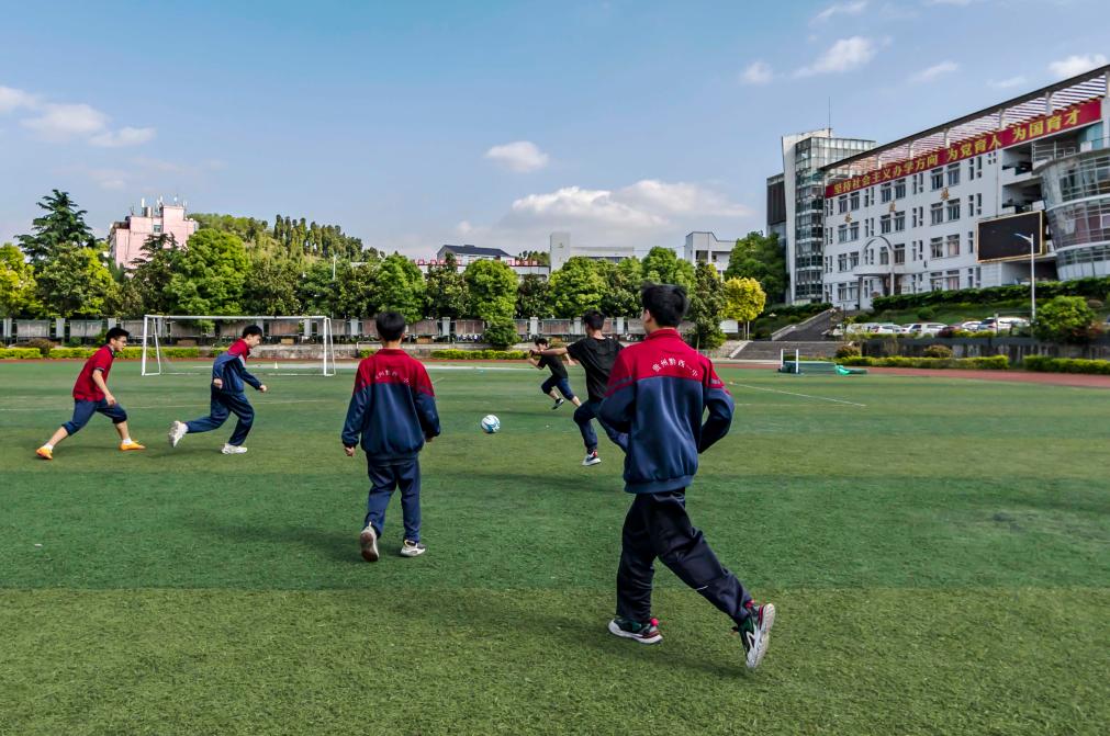 4月25日,在貴州黔西第一中學(xué),學(xué)生在進(jìn)行足球模塊實(shí)戰(zhàn)練習(xí)。新華社發(fā)(范暉攝)