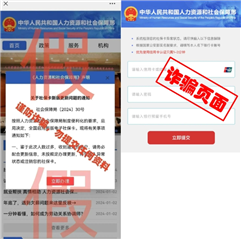 或者假冒人社部門官方網(wǎng)站,在仿冒網(wǎng)站上設(shè)置彈窗或鏈接,誘騙群眾在頁面上填寫姓名、身份證號、銀行卡號等信息,利用竊取的個人信息實施詐騙。