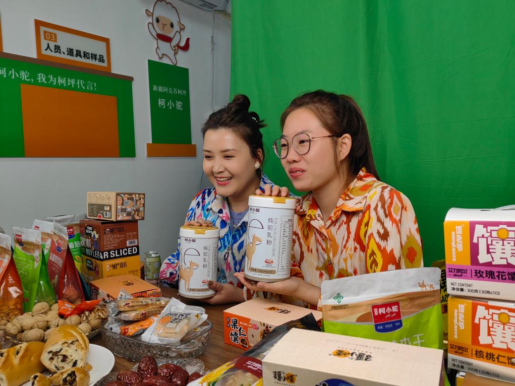 1月11日,在新疆柯坪縣農產品展銷中心,工作人員正在直播帶貨。新華社記者 蔡國棟 攝