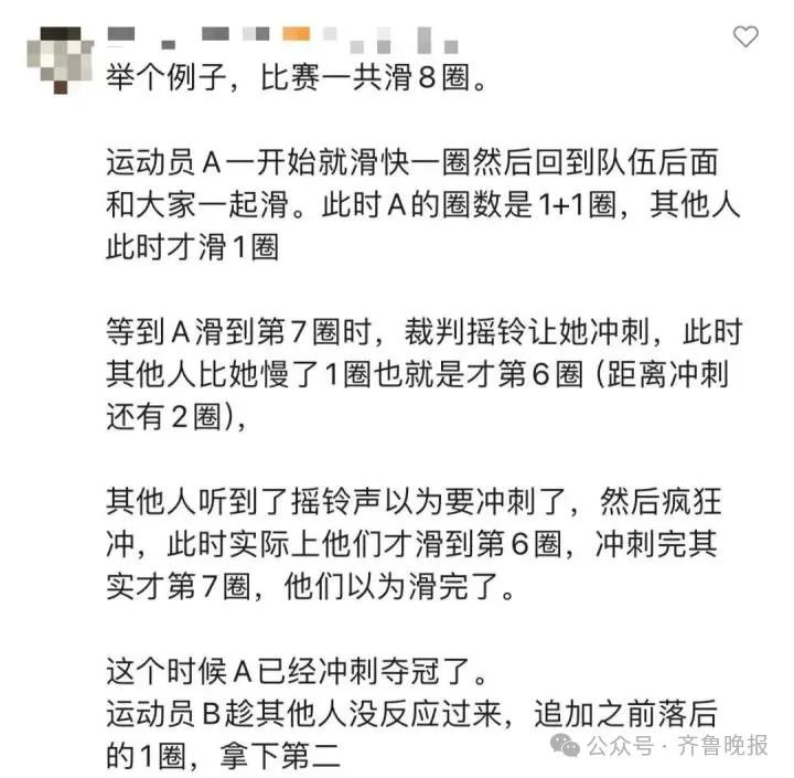 其實(shí)是提示楊婧茹比賽進(jìn)入最后一圈