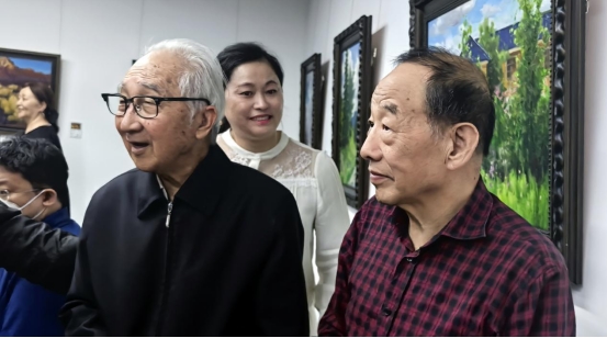 一進(jìn)展廳,兩人便開始交流外光下油畫風(fēng)景寫生的感悟與體會(huì),交流都去過的江西婺源、新疆小分子村、晉西太行山等地的風(fēng)土人情。藝術(shù)界泰斗靳尚誼來到開幕式現(xiàn)場時(shí),韓玉臣與翟欣建馬上快步迎上,相互擁抱、親切問候。之后,便一同陪靳尚誼仔細(xì)觀看展覽作品。