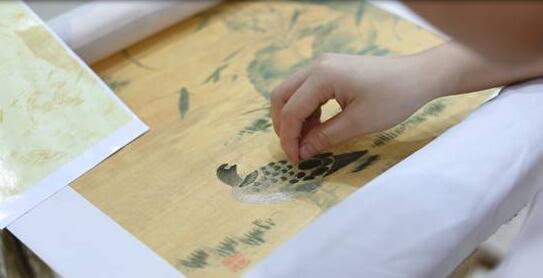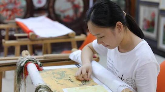 非遺傳承人繡制《樂(lè)雁圖》