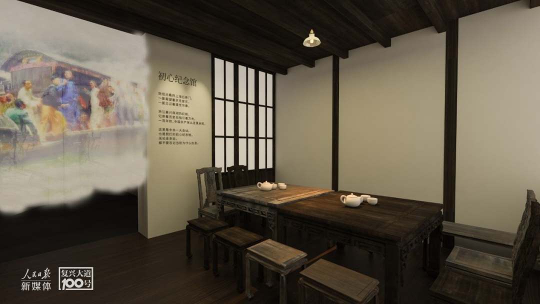 其中,初心紀念館仿照了1921年中國共產(chǎn)黨第一次全國代表大會的場景。幾張桌子、幾把椅子、一盞小燈,這種沉浸式體驗,一下子把大家?guī)Щ亓四嵌伟倌暾鞒痰钠瘘c,讓觀眾能夠在“初心紀念館”重溫建黨初期的艱辛與堅定。