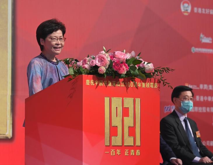 早前,《1921》在香港舉辦首映禮,香港特別行政區(qū)行政長官林鄭月娥就表示,電影《1921》以中國共產(chǎn)黨百年前在革命發(fā)源地上海誕生的進(jìn)程為故事核心,有著“不忘初心”、“薪火相傳”的意義,“希望入場觀賞《1921》的觀眾,特別是青年人,都能從100 年前這群熱愛國家的青年人身上,汲取奮勇向前、民族自尊自強(qiáng)的精神力量”。